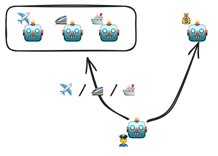 - si tout se passe bien, il commencera par utiliser le bon agent de transport (🚄/✈️/🛳️) à appeler